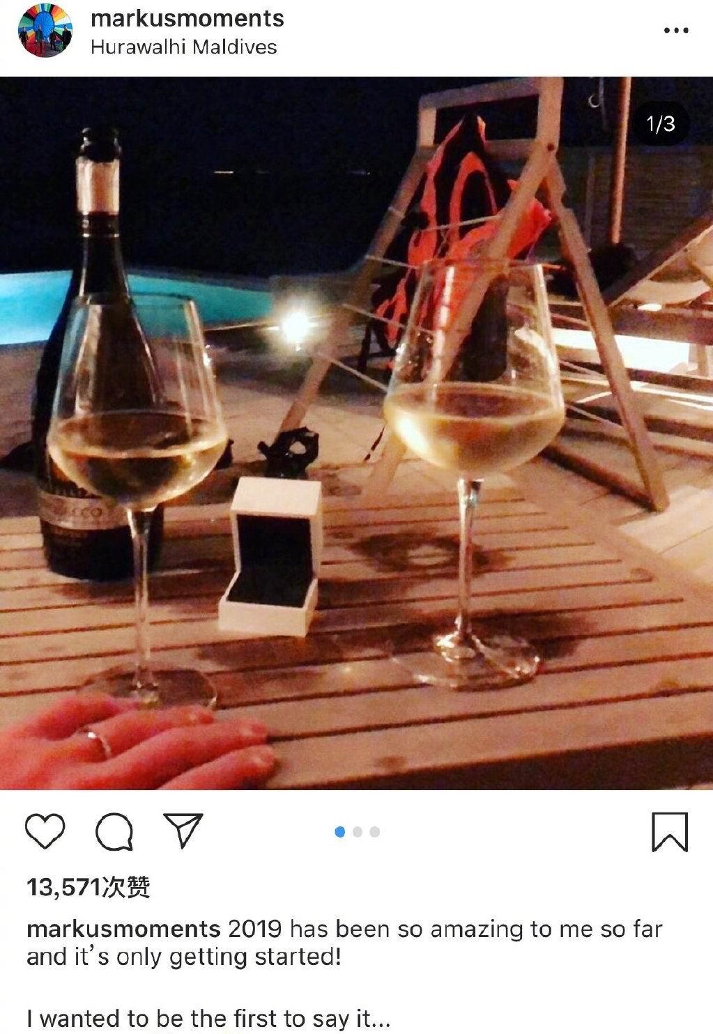马可·菲海利写道“2019年对我来说非常特别,我想做第一个说出来的人,我们订婚了”,网友们都为他们送上了祝福,马可·菲海利还晒出照片,两个酒杯和戴着戒指的手,看着相当甜蜜和幸福,网友们评论“六年啦,真的很不容易”。