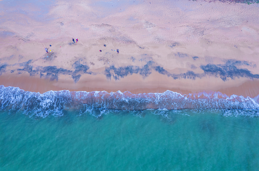 沙滩平缓,宽广舒展